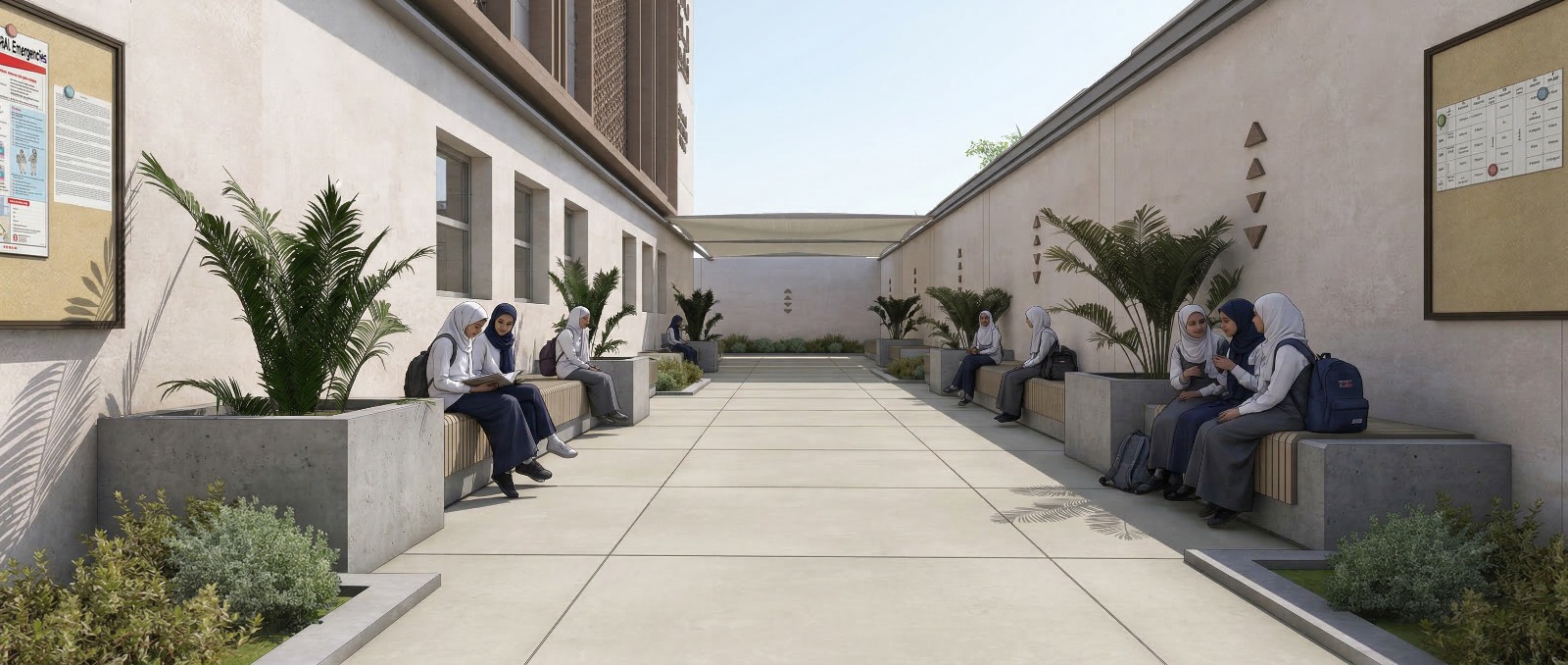 تحول معماري شامل لمنشآتنا — من المدخل إلى الفصول ومناطق الاستقبال والمساحات الطلابية. كل ركن صُمِّم لخدمة التعلم والرفاه والجمال.